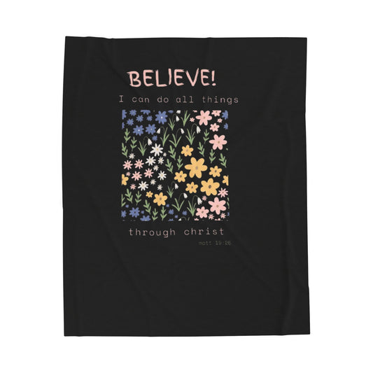 Inspirational Floral Velveteen Plush Blanket - Cozy Throw for Comfort, Motivational Gift, Home Decor, Encouragement, Prayer