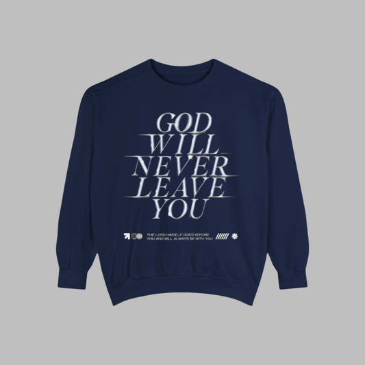Comforting Sweatshirt with Inspiring Message, Cozy Gift for Friends, Unisex Pullover, Perfect for Casual Wear, God Will Never Leave You